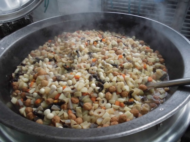 おでんは、じゃがいも、だいこん、ちくわ、揚げボール、こんにゃく、