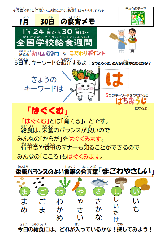 1月24日から30日は「全国学校給食週間」です!