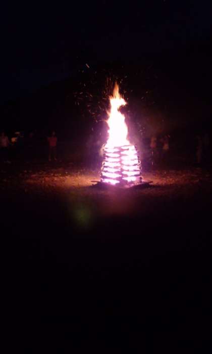キャンプファイヤーでゲームを思い切り楽しんでいます。