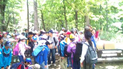 今から行動班に別れてお弁当をもらい、昼食をいただきます。