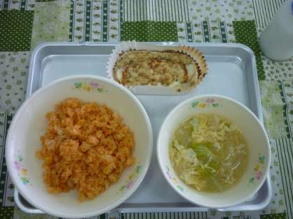 【献立】大豆ピラフ 白身魚の胡麻マヨネーズ焼き レタスの卵スープ 牛乳