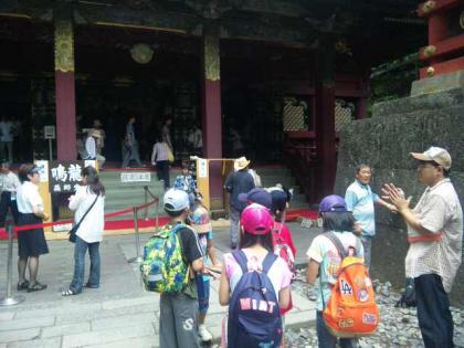 日光東照宮見学中。ここでもツアーコンダクターが活躍しています。一般のお客さんも聞き耳をたてるほどです。