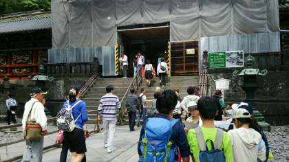 日光東照宮でのグループ行動が始まりました!グループでのガイドもしています。一般の方も耳を傾けています。