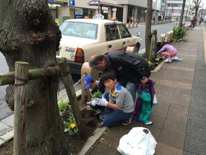 今回は、京王八王子駅南口周辺にも花を植えました!