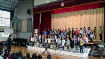 練習の成果を全校に見てもらう日です。祝いの手打ち、学年発表、メドレーとどれも、しっかりできました。2年生、よく頑張りました。明日の音楽会、ぜひお越しいただき、子供たちに大きな拍手をお願いいたします。