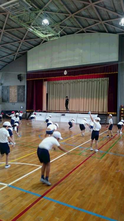 今日は縄跳びチャレンジデイ。全校の運動集会のスペシャルゲストにヒジキさんをお迎えしました。ギネス記録を6つお持ちのアスリートです。繰り広げられる技は当に目にも止まらぬ速さで短縄が回転します。どの子も「すごいよね。」と口にし、頷くばかりです。3時間目の2年生の体育の授業では、直接指導していただきました。短縄の学習意欲に火が点いた2年生でした。