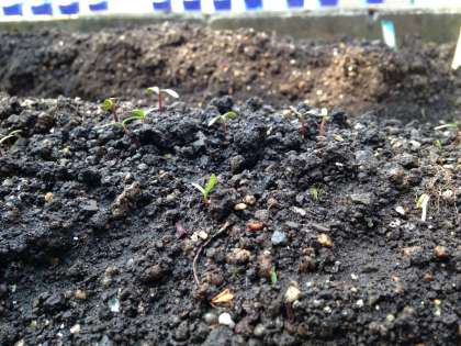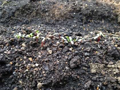 かわいい芽がぴょこんと出てきています!「先生、早くオクラ食べたいよ〜」と成長を楽しみにしています。
