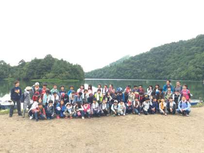 すごしやすい気候の中、ハイキングが始まりました!まずは湯ノ湖の湖畔で記念撮影。