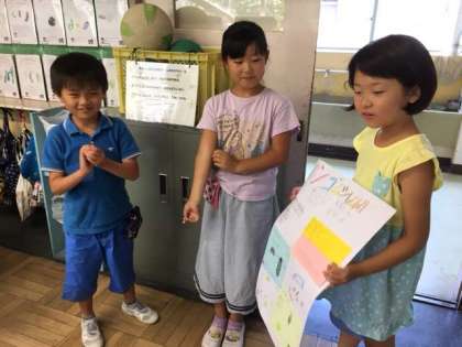 生活科の学習では、生き物を育てる学習のまとめで新聞作りに取り組みました。子供たちは一年生にもこのことを伝えようと、熱心に発表の練習をしています。