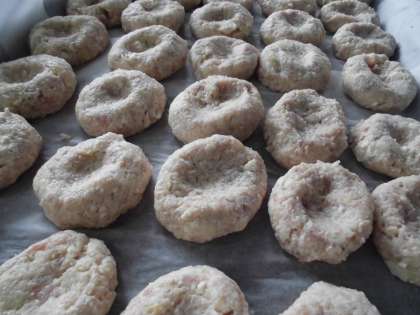 23日に引き続き、生たけのこを使ってハンバーグを作りました。たけのこはみじん切りにして加えます。一つ一つ丁寧に小判型にし、鉄板に並べてオーブンでこんがり焼きます。