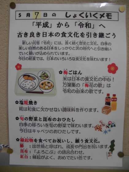 7日は「令和お祝い献立」を作りました。お味はいかがでしたか?