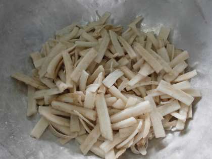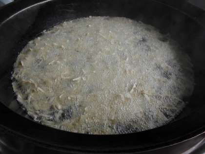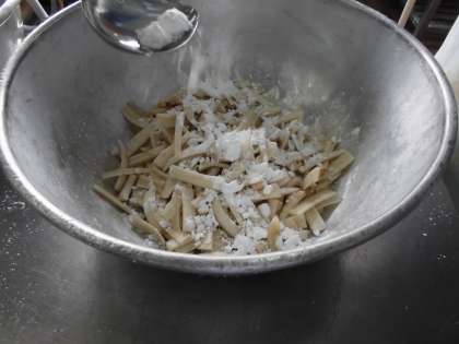 短冊のごぼうにでんぷんをまぶして、こちらも油でカラッと揚げます。