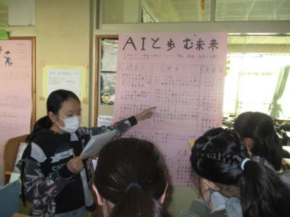 6年生の総合的な学習の時間では、キャリア教育について学習しています。「働く」という言葉から、テーマを決め、壁新聞にまとめました。学年合同でポスターセッションを行い、働くことへの興味や意欲を高められたようでした。