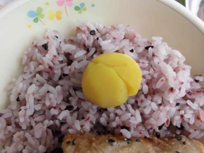 秋月ごはんは「くちなしの実」を使ってきれいな黄色に煮た栗をのせて食べました。2つ割りの栗なので2つをのせると月に・・・多めにのせると星になります。みなさんはどちらでしたか。
