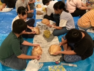 夕食後は、ふくべ細工に挑戦です。生き生きと表現活動に集中しています。