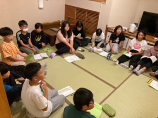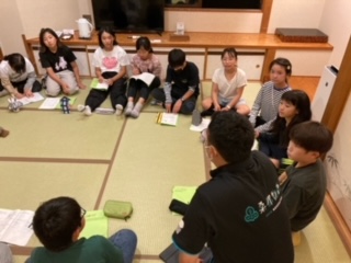 今日一日の反省会、室長会議です。よかったことや改善することを話し合い、室長を通して全員に伝えられます。