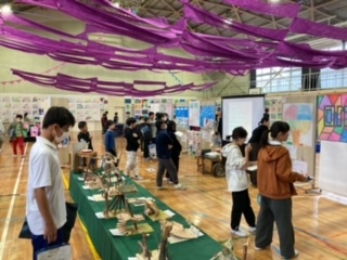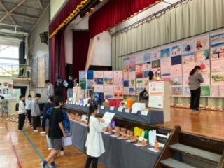 まずは、児童鑑賞の時間です。作品の良さや工夫を見つけながら、全校児童がじっくり鑑賞しました。