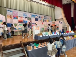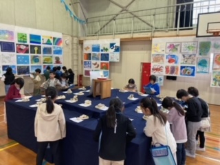 まずは、児童鑑賞の時間です。作品の良さや工夫を見つけながら、全校児童がじっくり鑑賞しました。