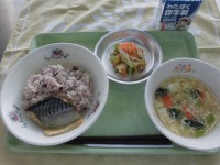 【献立】きびごはん 松風焼き のっぺい汁 茎わかめの当座煮 牛乳