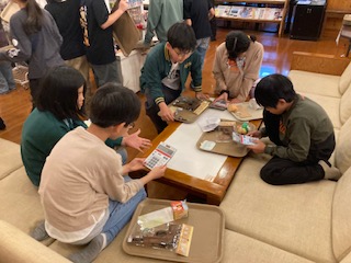 お土産の時間です。暗算、時には計算機で、予算内になるように、一生懸命に考えていました。