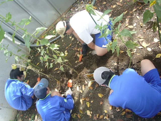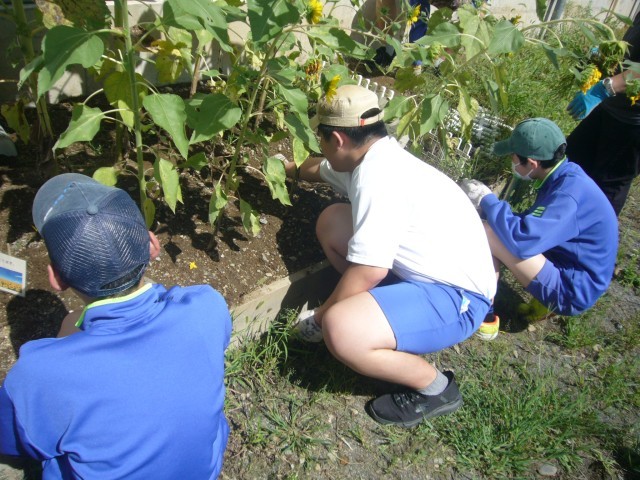 ヒマワリの手入れを行いました。