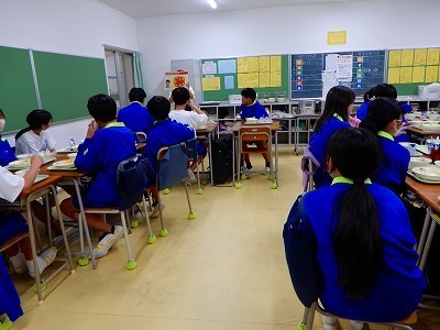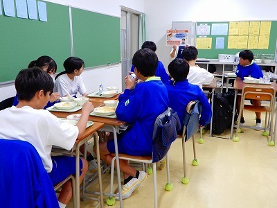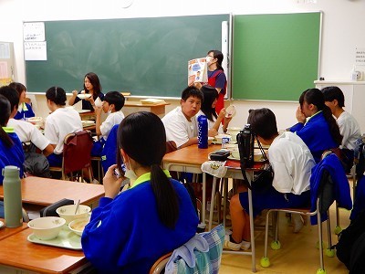 9月30日(火)、給食中の1年生の教室に栄養士さんが来てくださいました。