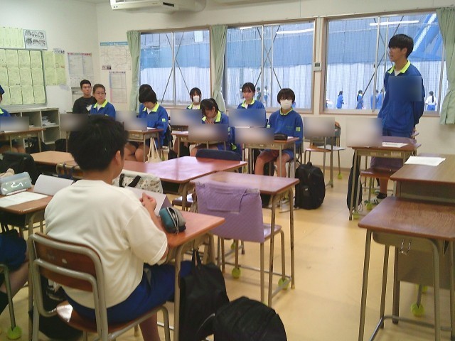 先日の生徒会役員選挙で当選した生徒会本部と各学年学級委員、各専門委員会の委員長が集合し、顔合わせを行っている様子です。