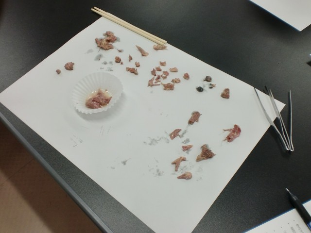 ペットフードとしても販売されている鶏頭水煮缶を使った解剖実習を行いました。