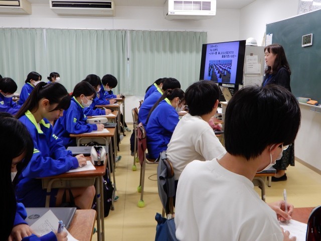 こちらは、キャリア教育部会による3年生と7組での授業です。