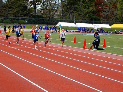 小学生と中学生がチームになって堂々と走る姿が、この行事のフィナーレを飾りました。