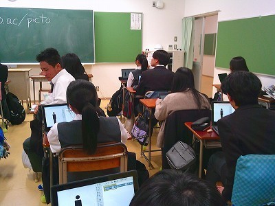 chromebookを使って、ピクトグラムをプログラミングして動かす、という授業でした。