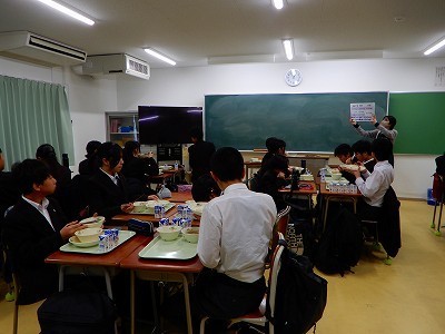 自分自身の目の前にある給食と関連させながら話を聞いていました。