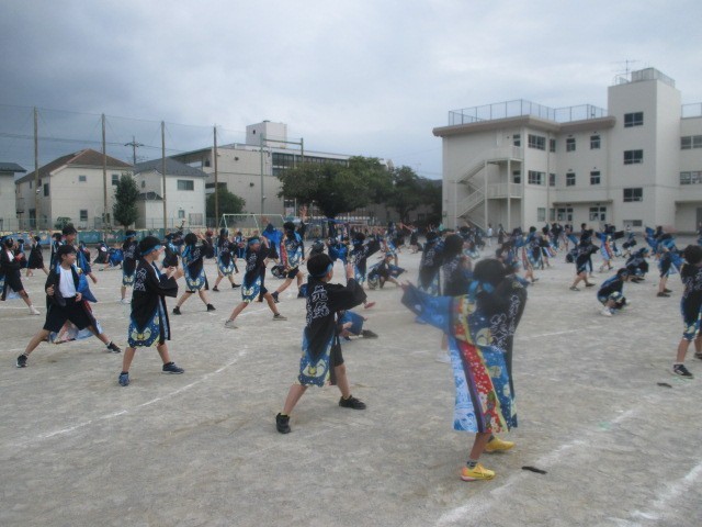 2学期が始まってから、体育の授業では運動会に向けて表現運動(ソーラン節)を中心に5・6年生で練習に励んできました。