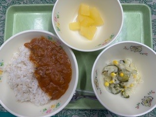 令和7年10月21日(火)の給食 公開日 2025/10/21 更新日 2025/10/21 給食の献立 ★今日の献立 もったいない大作戦ウィークハヤシライスコールスローサラダリンゴ缶牛乳 いいね(0)