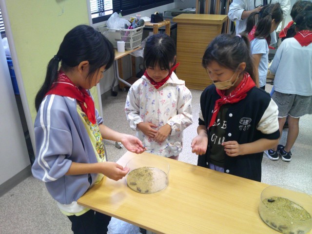 それぞれのペースで直に昆虫と触れ合い、行く前よりも虫と仲良くなることができました。
