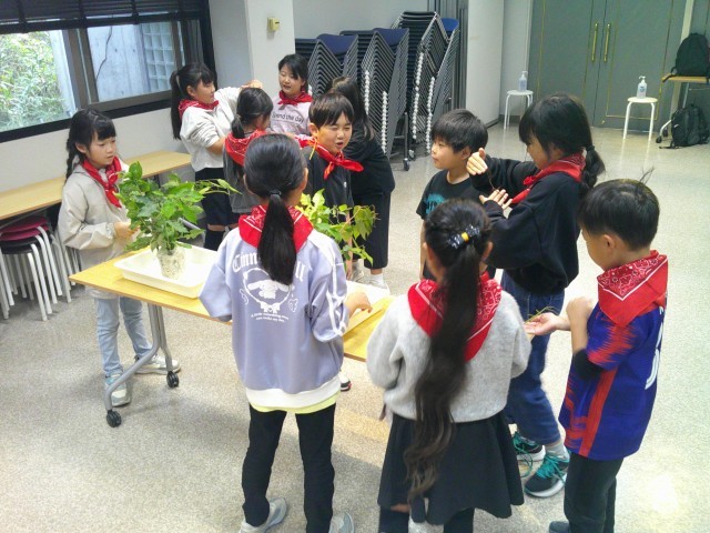 また、カブトムシの幼虫や森にいるゴキブリを触ったり、捕まえたコオロギをおとなしくさせる方法を教わったりしました。