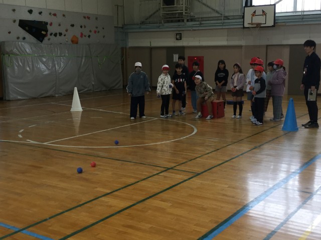 4年生が総合の学習で福祉について学び、その一環として3年生にボッチャを教えてくれました。