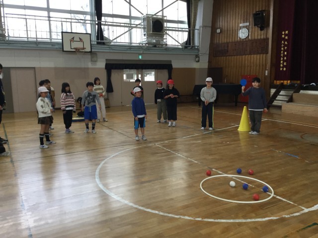 4年生との交流でボッチャ体験を行いました。