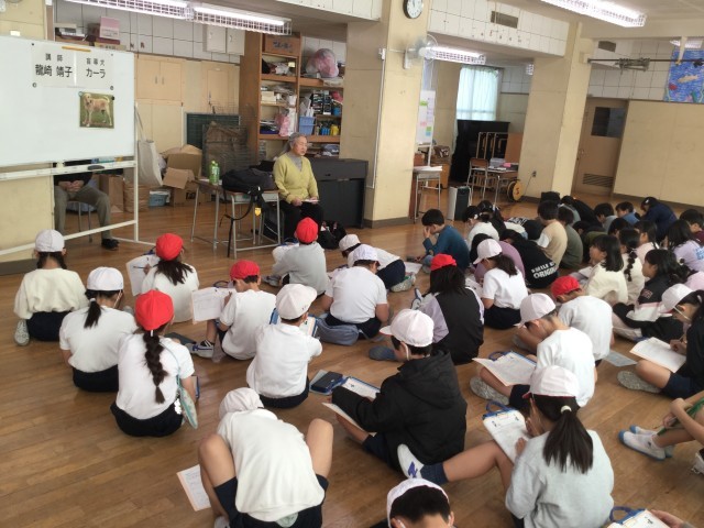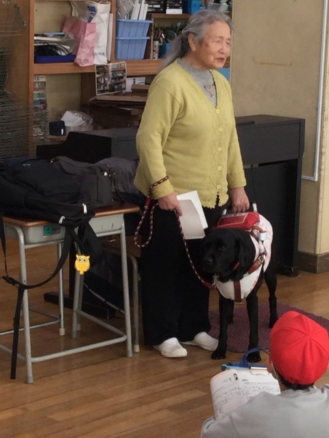 4年生は、総合的な学習の時間に「盲導犬体験」を行いました。