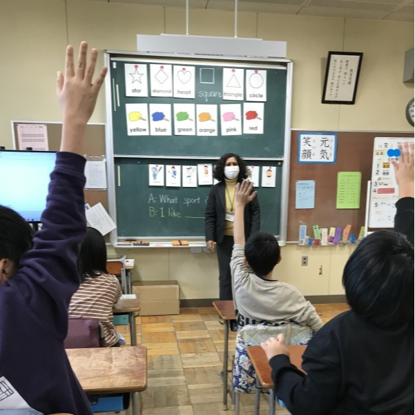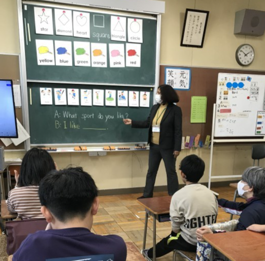 今回の外国語活動では、好きなスポーツを聞いたり答えたりしました。みんな積極的に参加して、元気に答えていました。