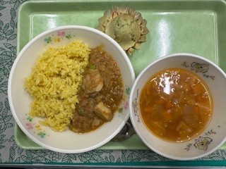 令和7年12月24日(水)の給食 公開日 2025/12/24 更新日 2025/12/24 給食の献立 ★今日の献立 ★クリスマス献立★ごろっとチキンのドライカレーミネストローネ桑都カップケーキセレクト飲み物2学期の給食は本日で終了です。 いいね(0)