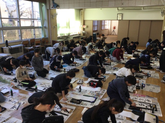 2学期末から冬休みにかけて練習を重ねてきた成果を発揮し、子どもたちは一文字一文字に気持ちを込めて、集中して取り組んでいました。