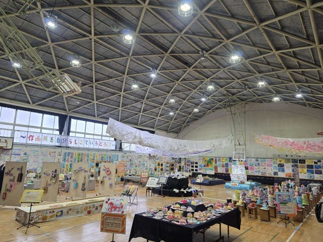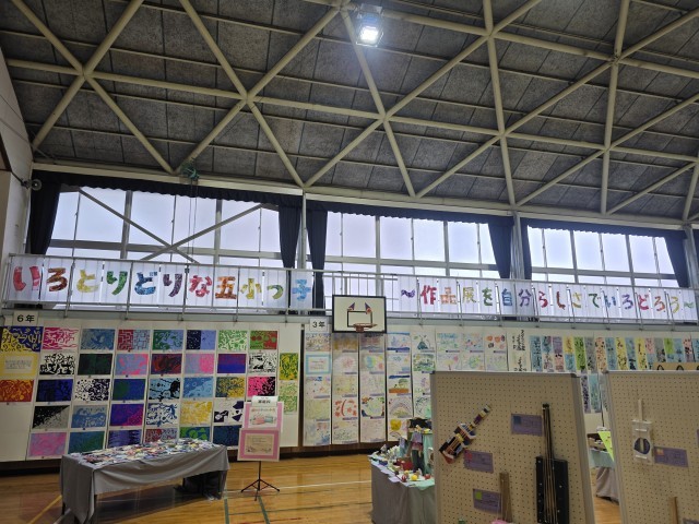 「いろとりどりな五小っ子~作品展を自分らしさでいろどろう~」をテーマに開催しております。本日の最終受付は16時までとなっています。雪が強くなってきましたので、御来校の際はお気を付けてお越しください。