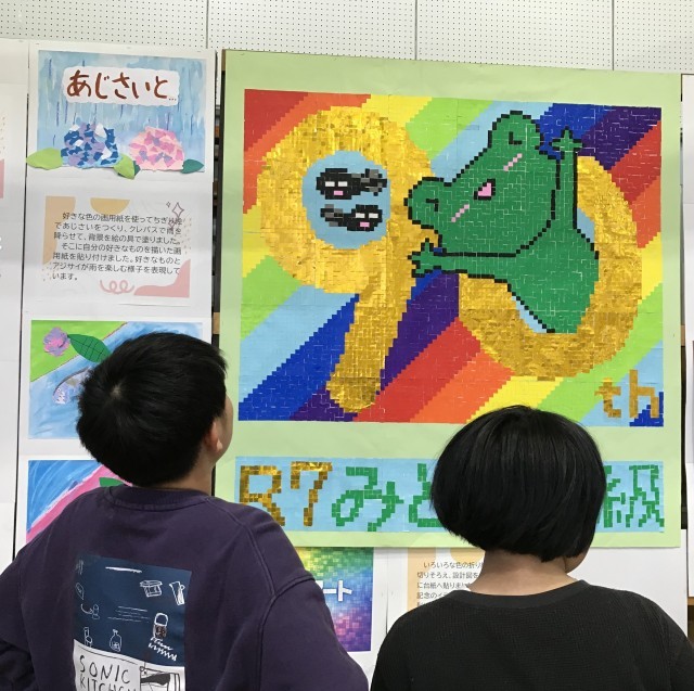 みどり学級 作品展鑑賞 公開日 2026/02/17 更新日 2026/02/17 五小の生活 作品展の鑑賞をしました。自分のお気に入りの作品を見付けたり、自分の作品のよさに改めて気付いたり、楽しんで鑑賞していました。 いいね(0)