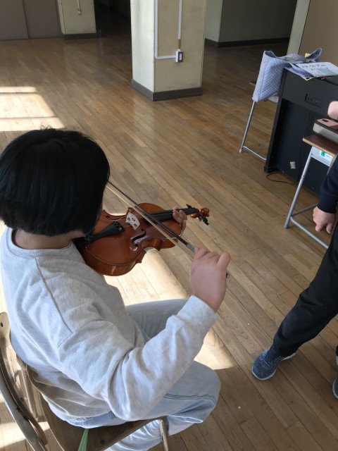 みどり学級 音楽の授業 公開日 2026/02/17 更新日 2026/02/16 五小の生活 音楽の授業で様々な楽器に触れています。普段見慣れないバイオリンにも挑戦しました。回数を重ねると徐々にきれいな音が鳴るようになりました。 いいね(0)