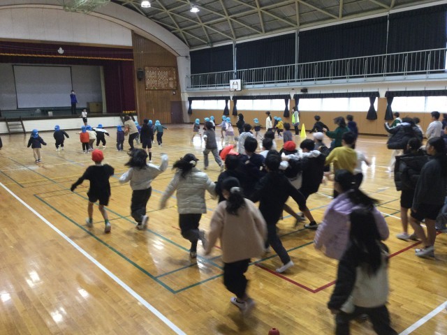 当日は、5年生がやさしく声をかけたり、手を引いてあげたりする姿がたくさん見られました。はじめは少し緊張していた保育園児も、次第に笑顔いっぱいに。