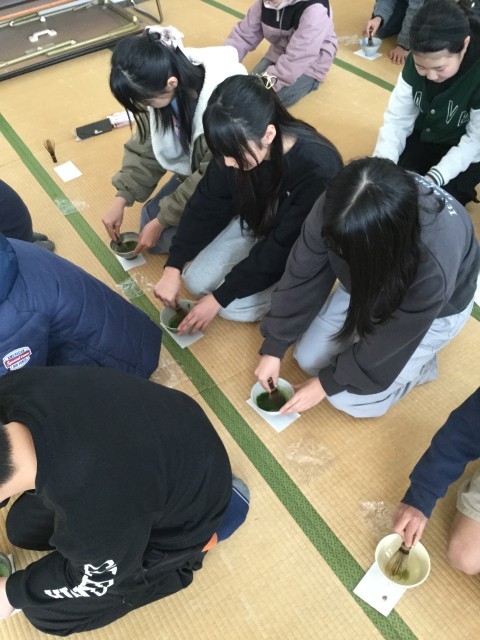 6年生 茶道体験 公開日 2026/02/24 更新日 2026/02/20 五小の生活 2月18日、19日の2日間で茶道体験を行いました。講師の方をお招きし、お菓子の食べ方や茶の飲み方など多くの作法を学びました。茶を点てる難しさや薄茶と濃茶の違いを知ることで日本の伝統的な文化を体験しました。卒業までの残りの登校日は19日です。今回学んだことを生かして落ち着いた心で卒業してほしいです。 いいね(0)