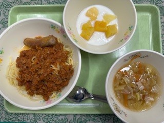 令和8年3月10日(火)の給食 公開日 2026/03/10 更新日 2026/03/10 給食の献立 ★今日の献立スパゲティミートソースウィンナーソテー白菜のスープフルーツヨーグルト牛乳 いいね(0)