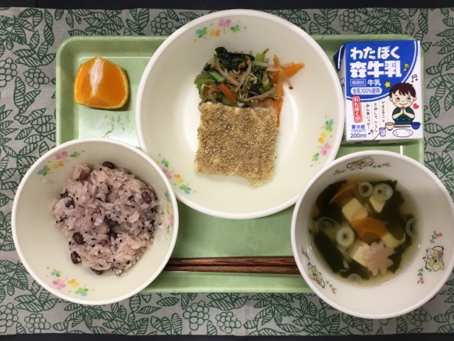 4月17日の給食 公開日 2026/04/17 更新日 2026/04/17 給食の献立 🎊今日の献立・赤飯・松風焼き・お祝いすまし汁・野菜のいろどり和え・果物(不知火)・牛乳入学・進級おめでとうございます! いいね(0)