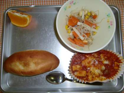 5月17日(木)の献立 公開日 2012/06/07 更新日 2012/06/05 給食の献立 <今日の給食> ソフトフランスパン、とうふのミートグラタン、まめじゃこサラダ、くだもの、ぎゅうにゅう いいね(0)